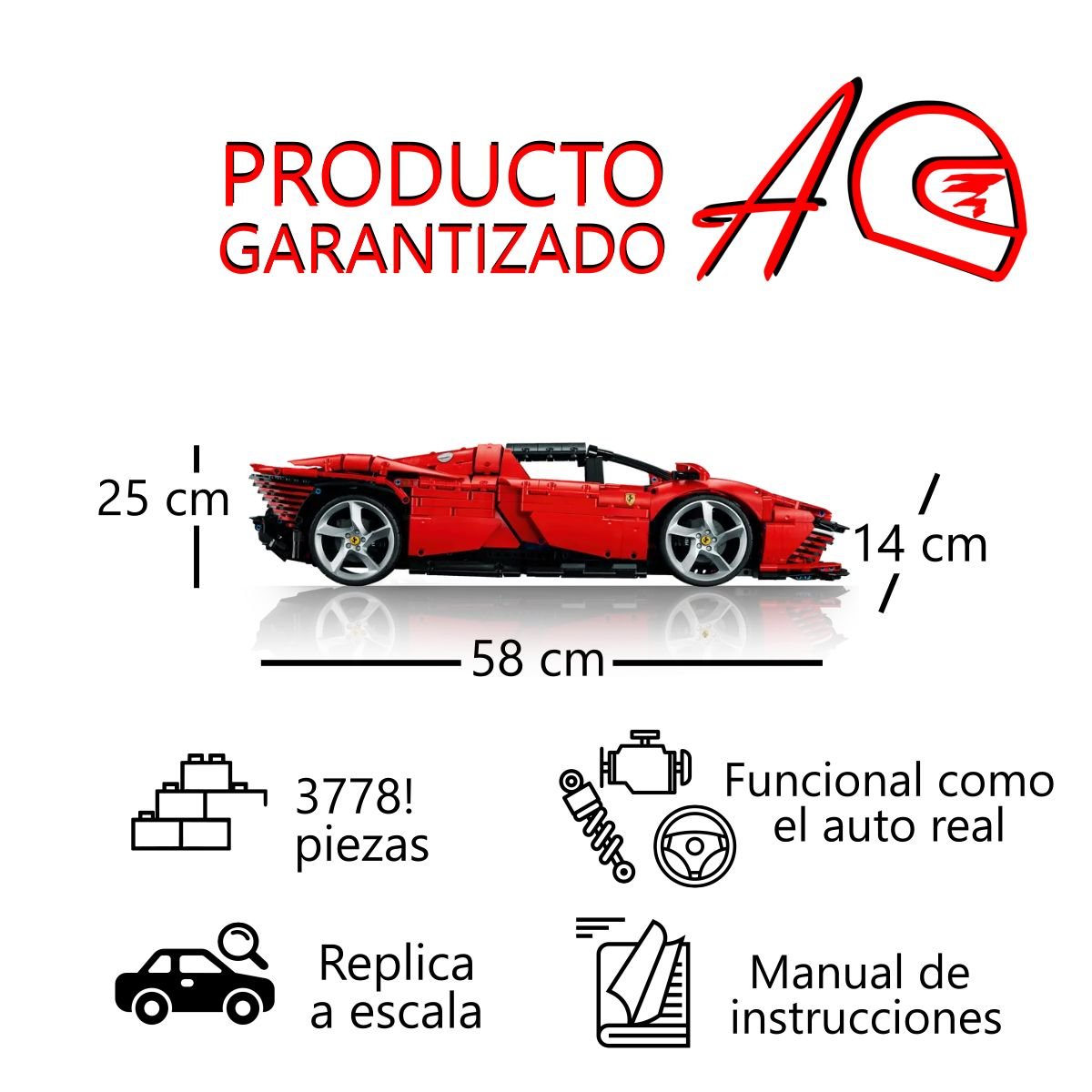 Diseñado para replicar con precisión el super deportivo Daytona SP3, este set ofrece múltiples funcionalidades técnicas: