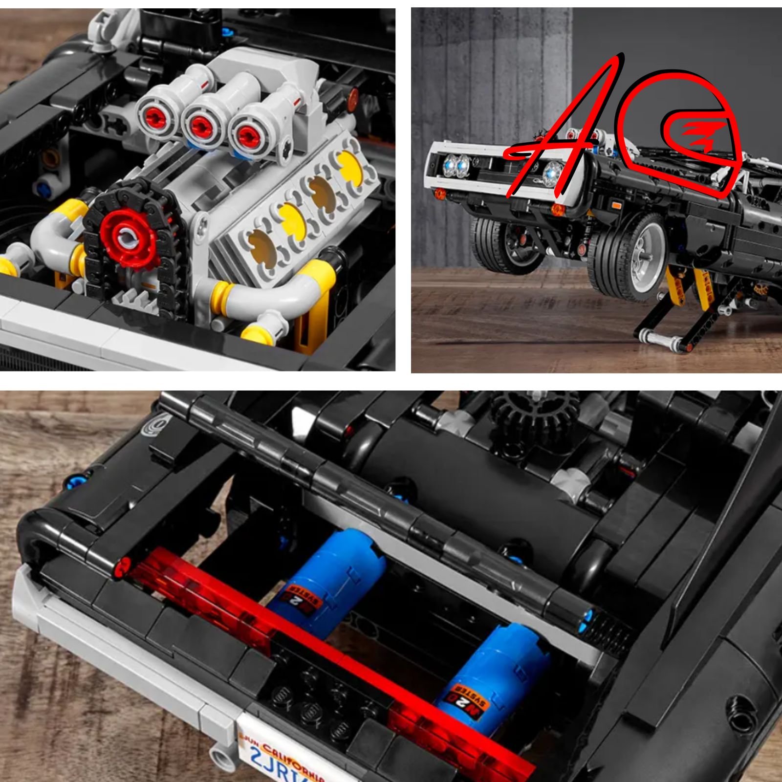 El Dodge Charger de Toretto cuenta con 1076 piezas y mide 40 cm de largo, garantizando una presencia imponente como pieza de exhibición